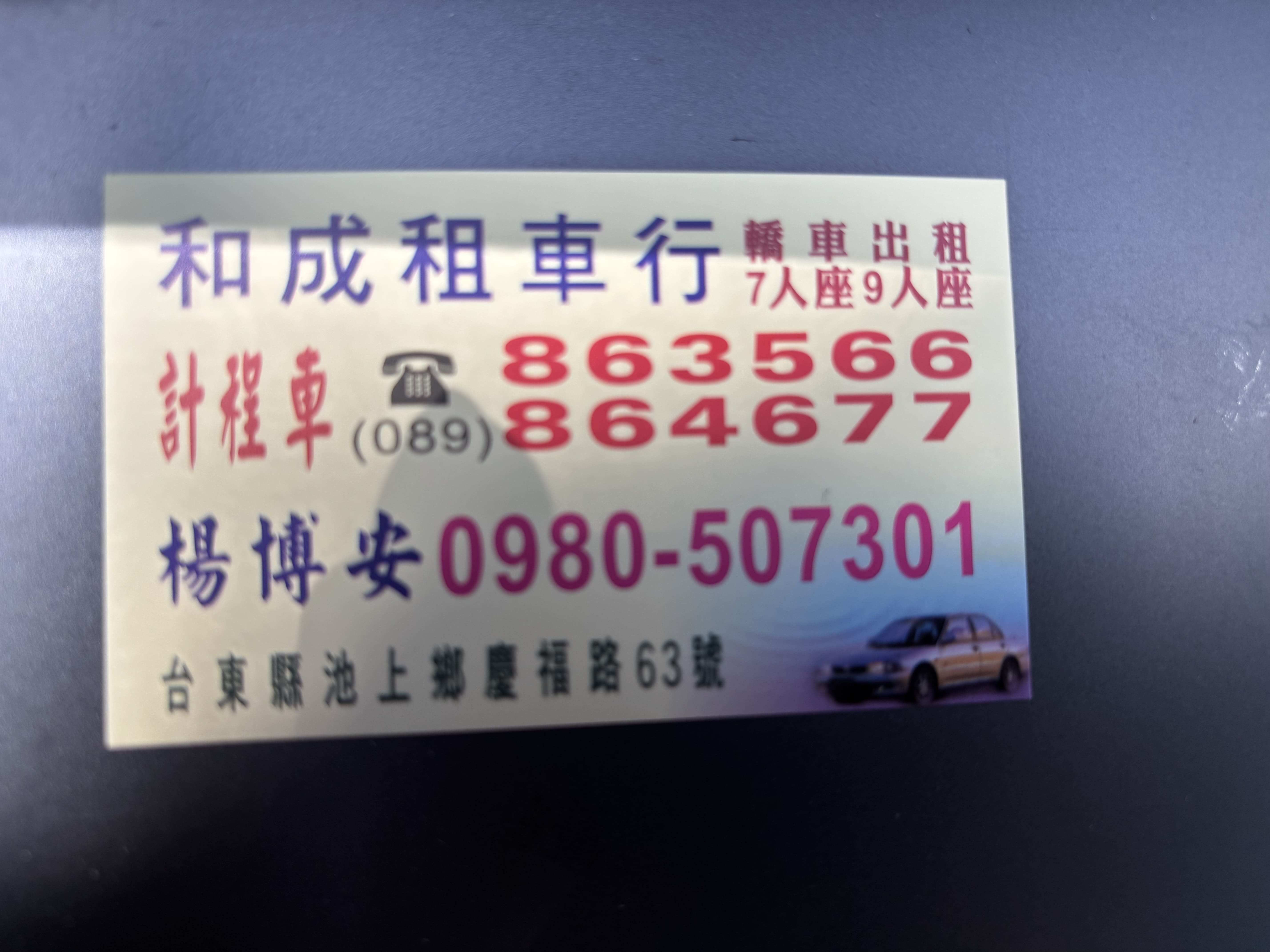 商業名稱:和成小客車租賃行